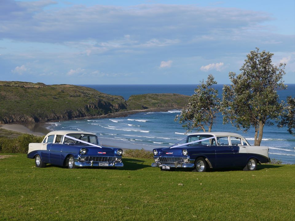 1956 Chevy Chauffeured Hire – Classic Wedding, Event & Photoshoot CarWhen it comes to making a statement, few cars turn heads quite like the 1956 Chevy. With its striking dark blue exterior, accented by a pearl white roof, and gleaming chrome details, this classic American icon blends vintage glamour with timeless sophistication. Whether you’re searching for the perfect wedding car hire in Sydney, a stylish ride for your school formal, or a showstopping vehicle for a photoshoot or promotional campaign, this Chevy delivers unforgettable presence.A True Classic with Retro StyleStep back into the golden era of motoring with this 1950s masterpiece. The 1956 Chevy has long been celebrated for its low, confident stance and its signature mix of toughness and elegance. Inside, you’ll find beautifully restored blue and white leather bench seats, adding to the nostalgic charm while offering comfortable seating for up to four passengers.For purists, this car retains its original Blue Flame 6-cylinder engine, offering an authentic classic car experience that’s smooth, quiet, and unmistakably retro. Unlike many louder Chevys of the era, this one glides with understated confidence, making it ideal for both chauffeured rides and film shoots where sound matters.Chauffeured Car Hire for Weddings, Formals & EventsYour wedding day, school formal, or special event deserves more than just transport – it deserves an arrival. With this chauffeured 1956 Chevy, you’ll enjoy not only the ride but also the experience. Our professional and friendly drivers are there to ensure everything runs seamlessly, assisting with the little details and making sure your journey is as enjoyable as your destination.Perfect for:Wedding car hire – arrive in style with classic ribbons (customisable for your theme)School formal car hire – stand out from the crowd in old-school coolEvent car hire – from milestone birthdays to anniversaries and red-carpet arrivalsLuxury transfers – add glamour to a hotel, restaurant, or reception getawayFor weddings, we provide thoughtful extras including complimentary white ribbons, refreshments, and large umbrellas in case of unexpected weather. You can also add a Getaway Service, ensuring a smooth and stylish transfer from your reception to your accommodation.A Car Made for the CameraBeyond chauffeured hire, this 1956 Chevy is also highly sought after for photoshoot car hire and promo car rental. Its distinctive lines, chrome accents, and two-tone colour scheme make it a natural star for the camera.Ideal for:Fashion shoots – add vintage flair and retro cool to your collectionMusic videos – instantly recognisable ‘50s style for iconic backdropsMovies & TV shows – authentic period styling with a reliable engineCommercials & brand activations – create standout campaigns with a classic centrepieceCorporate promotions – add impact to product launches or experiential eventsBecause this Chevy runs its original, quieter engine, it’s particularly well-suited for film and video productions where crisp audio is essential.Double the Impact – Matching Pair AvailableLooking for something truly unique? We have not just one, but a matching pair of 1956 Chevys available for hire. Perfect for larger bridal parties, dual photo setups, or creating a bold visual impact at any event, booking both guarantees double the style and double the attention.Service AreaBased in Western Sydney, this classic Chevy is available for hire across:Sydney City & Blue MountainsSouth Coast & North Coast NSWHunter Valley, Southern Highlands, Newcastle Wherever your celebration or creative project is taking place, we’re happy to travel to help make it extraordinary.Book Your 1956 Chevy TodayWhether you’re planning the wedding of your dreams, celebrating a milestone, attending a school formal, or creating an unforgettable visual campaign, the 1956 Chevy is the ultimate choice for chauffeur car hire, wedding car hire, school formal car hire, event car hire, photoshoot car hire, and promo car rental.With its flawless styling, professional service, and unmatched versatility, this is more than just a car – it’s an experience.
