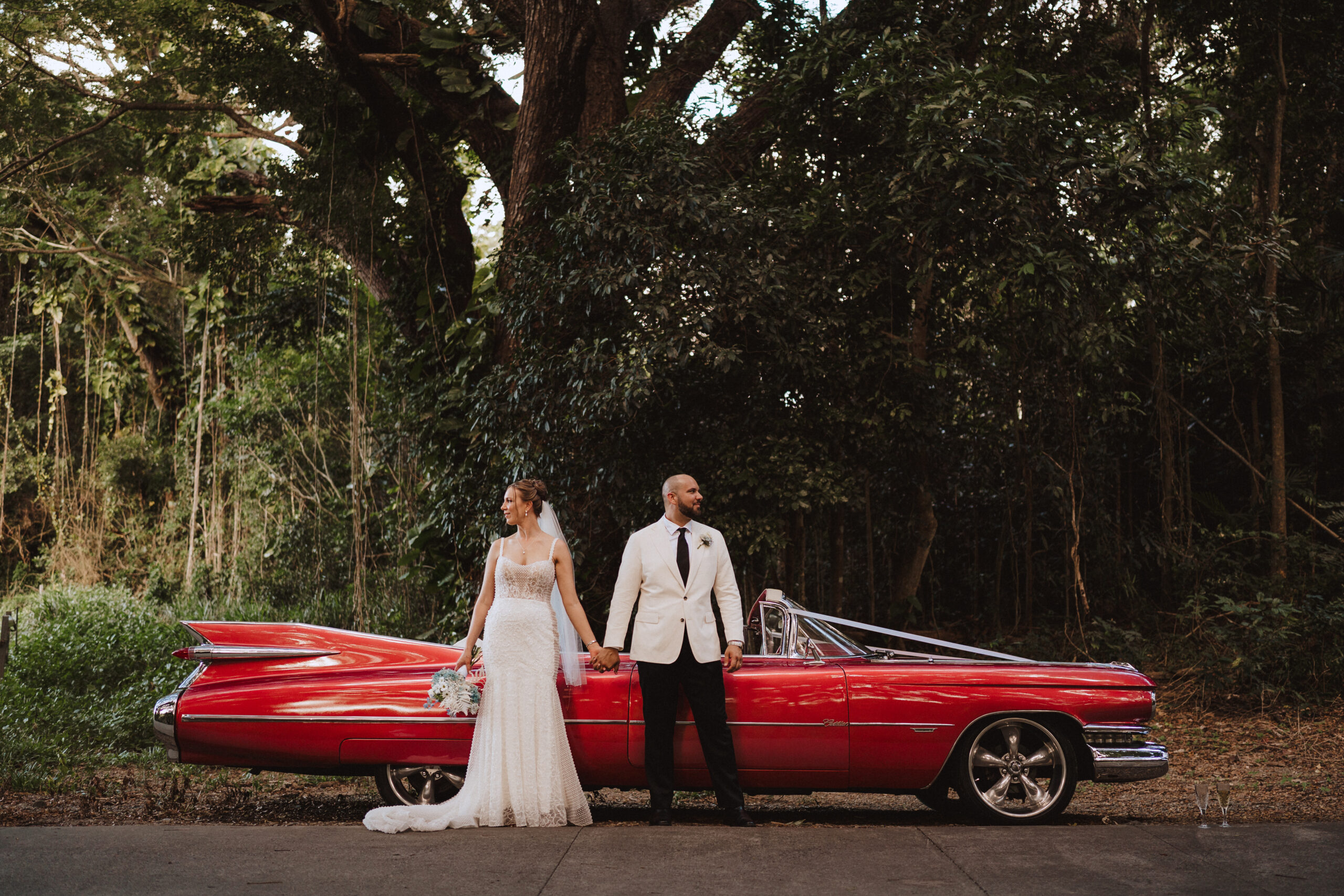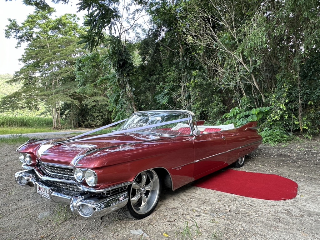 Turn heads and steal the show with Barbalishious—our eye-catching 1959 Cadillac DeVille Convertible, now available for chauffeured hire in Cairns and surrounding areas. With its iconic fins, sweeping lines, and unapologetic vintage glam, this retro queen brings a bold, unforgettable vibe to every occasion. Whether you're after American muscle car hire in Port Douglas for a dream wedding entrance, an unforgettable school formal, a stylish birthday celebration, a standout arrival at a special event, or a luxury airport transfer with flair—Barbalishious delivers a head-turning experience that’s second to none. Finished in gleaming pastel pink with endless chrome and a pristine white convertible top, this Caddy is the very definition of fabulous. The name Barbalishious says it all—she’s fun, flirty, unapologetically bold, and oh-so-memorable. Settle into the plush white leather interior, stretch out across the wide bench seats, and feel the nostalgia hit as you glide down tropical roads in unmatched vintage style. From the towering tailfins to the classic whitewall tyres, this Cadillac is a moving masterpiece—and she’s here to make your moment magic. Weddings Barbalishious is made for weddings—literally. If you're dreaming of a fairytale arrival, this 1959 Cadillac delivers timeless romance with a dramatic edge. Her pastel hue adds a pop of colour that photographs beautifully, and the convertible top means you can soak up the sunshine or starlight as you cruise to your ceremony or reception. There's ample room for big dresses and big entrances, and your guests will be talking about your arrival long after the last dance. Whether it's a vintage-themed celebration or a glamorous tropical wedding, Barbalishious sets the tone in unforgettable style. School Formals Want to arrive like a movie star to your school formal? This American classic is your red-carpet moment on wheels. With its commanding size, polished chrome, and standout presence, Barbalishious offers a grand entrance you’ll never forget. Step out of this convertible and into your big night feeling like a celebrity—because this Cadillac doesn’t just drive, it performs. The perfect backdrop for photos with friends, this ride is made for memories. Birthday Parties Celebrating a milestone birthday or planning a surprise for someone special? Barbalishious makes every birthday celebration one-of-a-kind. Whether you're cruising down the coast, arriving at a party venue, or making an unforgettable dinner entrance, this convertible adds a playful touch of vintage luxury that screams fun. Pair it with themed outfits or let the car do all the talking—either way, it's a celebration on wheels. Special Events & Promotions Looking to make a splash at your next event, launch, or promotional shoot? Barbalishious is a crowd magnet. This 1959 Cadillac DeVille adds instant wow-factor to any scene—be it a photo shoot, corporate event, parade, or festival. It's not just a car; it’s a centrepiece, a photo op, a mood-setter. Want people to remember your brand or event? Put Barbalishious front and centre. Airport Transfers Why settle for a standard car when you can roll in retro? Make your arrival in Cairns or Port Douglas extra special with a Cadillac airport pickup. Whether you're surprising someone, starting a holiday in style, or simply enjoying a bit of luxury just because—Barbalishious turns every airport transfer into an experience. Forget Ubers—this is next-level. No matter the occasion, Barbalishious brings fun, flair, and full-on fab. Book this American muscle car hire in Port Douglas and Cairns today and let the fins fly, the top drop, and the good times roll.