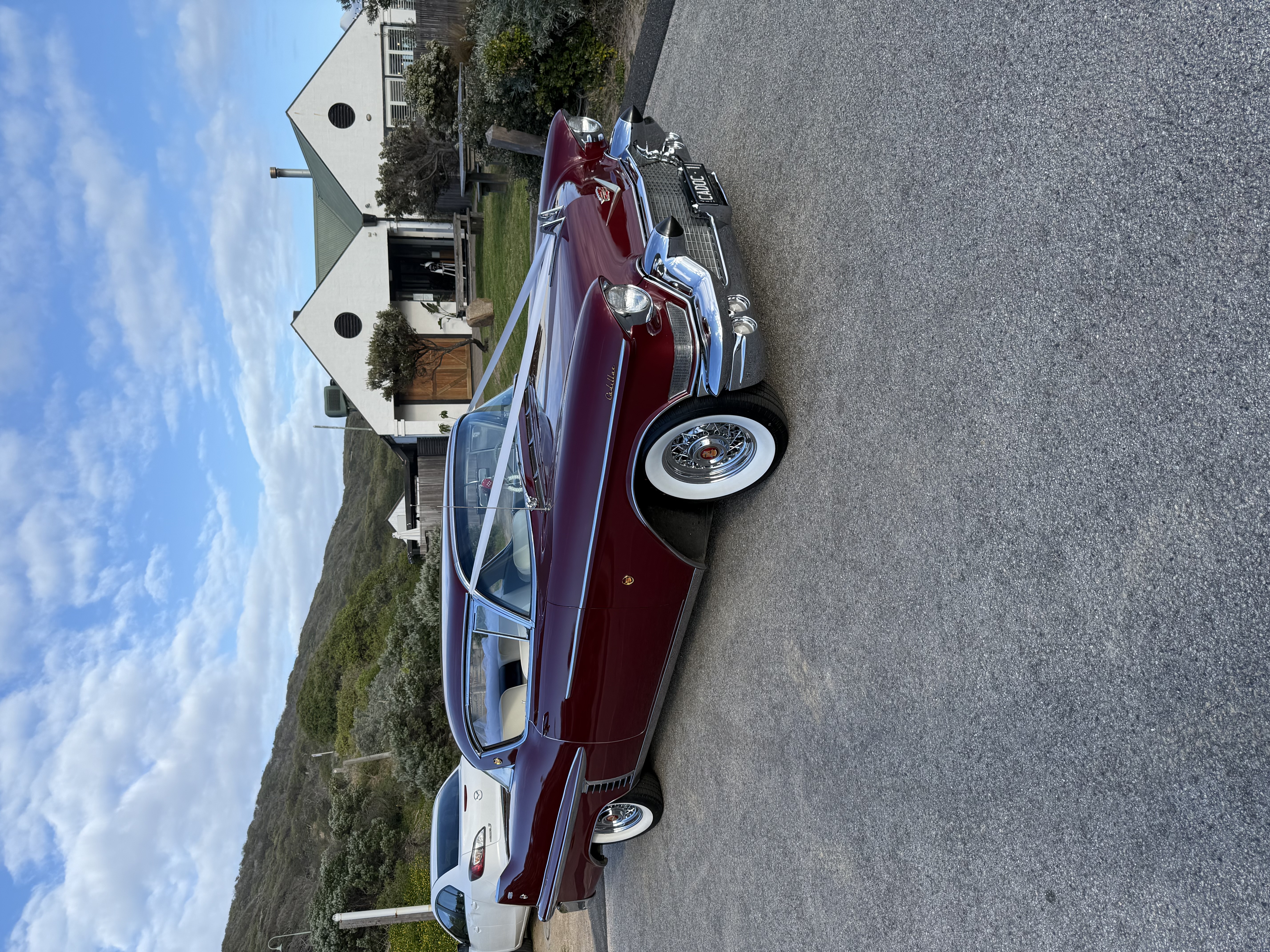 For couples, families, and event organisers searching for the ultimate in classic wedding car hire Melbourne, meet Ellie Mae. This fully restored 1957 Cadillac Series 2 Coupe is more than a car—it’s an icon of timeless American style, chauffeur driven and available for weddings, school formals, photoshoots, and special occasions across Melbourne and surrounding regions.Finished in a deep maroon metallic with gleaming chrome trim and traditional Cadillac spoke wheels, Ellie Mae stands out as a centrepiece of any celebration. From the moment she arrives, her bold styling, flawless paintwork, and mirror-like finish capture the romance and nostalgia of the 1950s. It’s no surprise this was one of Elvis Presley’s favourite Cadillac models—and now she can be part of your story too.Cadillac Wedding Car Hire for Melbourne’s Best VenuesMelbourne is home to some of Australia’s most stunning wedding venues, and Ellie Mae complements them beautifully:Leonda by the Yarra, Hawthorn – Ellie Mae glides along the riverside driveway, setting the scene for a glamorous waterfront ceremony.St Andrews Conservatory, Fitzroy – Her gleaming maroon exterior against the glasshouse architecture creates unforgettable photo opportunities.Overnewton Castle, Keilor – Picture Ellie Mae rolling up to the castle’s historic stone façade, her chrome sparkling in the gardens.Wattle Park Chalet, Surrey Hills – Her vintage lines echo the chalet’s rustic, old-world charm.Montsalvat, Eltham – Arriving among heritage buildings and bushland feels like stepping into a movie scene.Wherever your wedding is held, Ellie Mae brings sophistication, nostalgia, and cinematic presence.Luxurious Cadillac Interior – Comfort Meets StyleStep inside and the experience continues. Ellie Mae offers bright white leather seating for up to five passengers plus chauffeur, ideal for the bridal party, family, or school formal groups.Her spacious cabin allows for flowing gowns and veils, while large panoramic windows provide natural light perfect for wedding and event photography. Unlike many vintage cars, Ellie Mae also includes modern heating and air conditioning—ensuring comfort in every Melbourne season.Wedding Cars, School Formal Hire & Special EventsClassic Wedding Car Hire MelbourneEllie Mae is a standout choice for brides seeking space, elegance, and style. Imagine arriving at the Royal Exhibition Building in Carlton Gardens, stepping out of her gleaming chrome doors to a chorus of admiration.School Formal Car Hire MelbourneStudents love the Hollywood-style arrival Ellie Mae delivers—perfect for making an entrance at school formals.Special Events & Milestone CelebrationsFor anniversaries, milestone birthdays, or black-tie functions, Ellie Mae elevates every occasion with effortless vintage glamour.Photoshoots, Film & Promotional Classic Car HireEllie Mae’s timeless presence adds cinematic authenticity to:Bridal photoshootsMusic videosFilm productionsHigh-end promotional campaignsHer vintage styling guarantees visual impact for any creative project.Chauffeured Cadillac Hire in Melbourne & BeyondAvailable exclusively as a chauffeured Cadillac for hire, Ellie Mae ensures your journey is stylish and stress-free. Your professional driver takes care of everything, whether you’re in Melbourne’s CBD, the leafy eastern suburbs, or scenic destinations like the Yarra Valley or Mornington Peninsula. Elllie Mae seats 5 passengers in total, 3 in the back and 2 upfront. Arrive in Style with Ellie Mae – Classic Cadillac Hire MelbourneMore than transport, Ellie Mae is a fully restored American classic that transforms your day into something extraordinary. From weddings to school formals, photoshoots, and special events, she guarantees a glamorous arrival and timeless memories.✨ Make your event unforgettable with Ellie Mae—the 1957 Cadillac Series 2 Coupe that brings elegance, nostalgia, and Hollywood-style flair to Melbourne weddings and events.