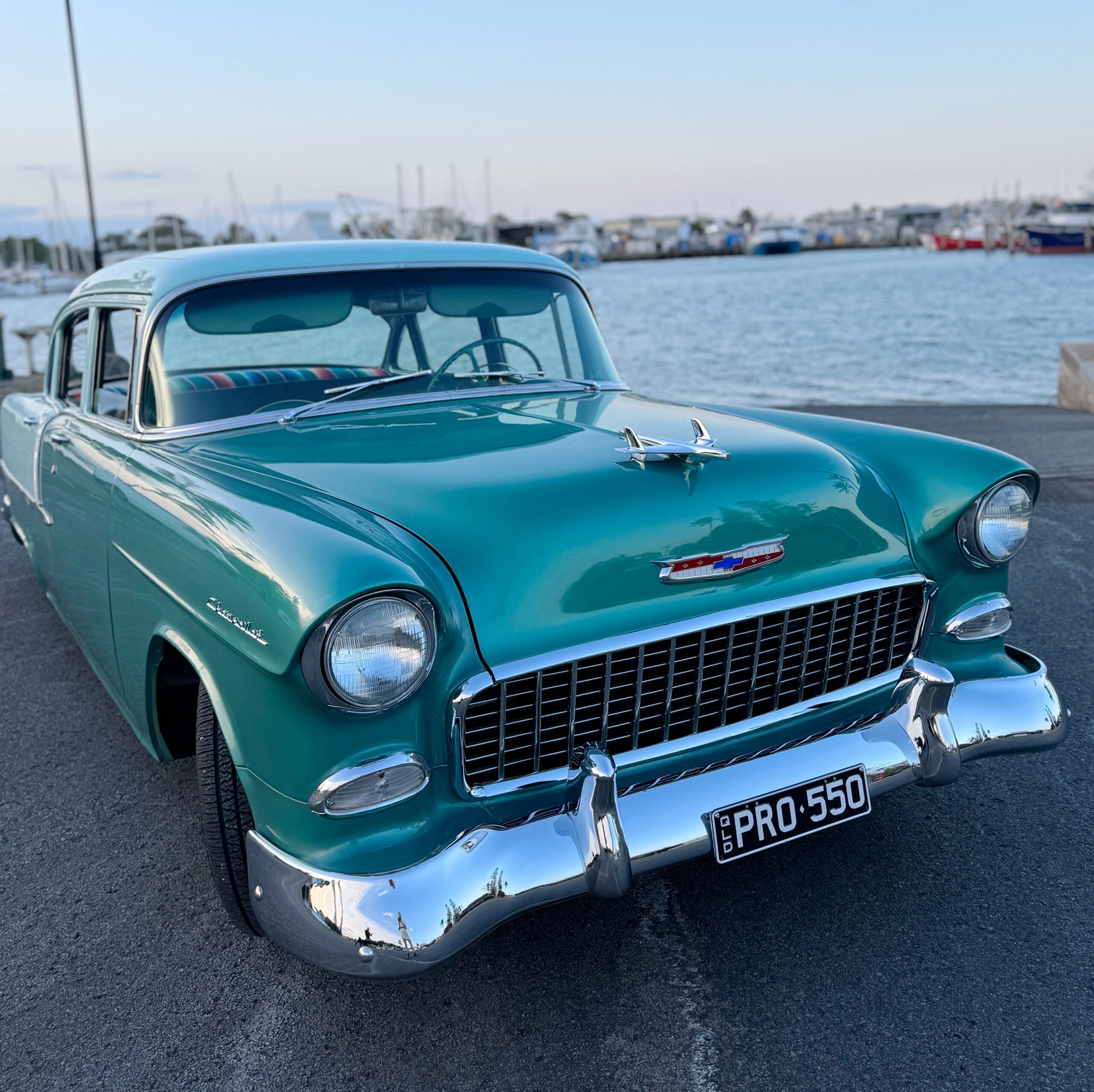 Iconic Classic Car for Photoshoots & Promotional Campaigns in Noosa and BeyondStep back into the golden age of American automobiles with the 1955 Chevrolet Bel Air “Neptune Split Green”, available exclusively for photoshoots, brand activations, and promotional hire in Noosa, the Sunshine Coast, and beyond (Brisbane and surrounding areas for additional fees). This four-door classic combines vintage elegance with retro flair, offering a unique visual presence that instantly elevates any creative project. Whether you’re shooting a fashion editorial, filming a commercial, or creating promotional content, this 1955 Chevy delivers timeless style, bold colour, and unforgettable charm. With its striking Neptune Green and Teal split-color design, this car doesn’t just capture attention—it defines it.A True Classic of Automotive DesignThe 1955 Chevrolet Bel Air is one of the most iconic American cars of the 1950s. Its combination of sleek lines, bold curves, and distinctive split-color styling set a new standard for automotive design during the era. This Neptune Split Green example showcases the original 1950s aesthetic with a pristine finish and meticulously maintained features, making it perfect for high-end photoshoots and promotional work. The four-door design also provides a versatile platform for creative setups, whether capturing the exterior silhouette, interior details, or staged lifestyle scenes.The classic color combination of Neptune Green and Teal reflects the optimism and style of mid-century America. It is a timeless palette that photographs beautifully in any light and complements both fashion-forward and vintage-inspired creative projects. Every angle of this car speaks of craftsmanship, elegance, and the era’s distinctive flair.Perfect for Photoshoots, Film, and Promotional WorkThe Neptune Split Green ’55 Chevy is ideal for a variety of creative uses, making it a favourite among photographers, stylists, and creative directors:Fashion Editorials & Styled Shoots – Add vintage sophistication and visual impact to your photography or video productionBrand Activations & Product Campaigns – Make your promotional material unforgettable with a classic automotive centrepieceFilm & Television Productions – Perfect for 1950s period scenes or retro-inspired storylinesMusic Videos & Social Media Content – Adds cinematic flair, nostalgia, and photogenic appealPromotional Events & Pop-Ups – Draw attention and elevate engagement with a head-turning visual assetWhether your project calls for glamour, retro charm, or eye-catching colour contrast, this classic Chevrolet transforms ordinary shots into extraordinary visuals.Timeless Appeal and Nostalgic CharmThe 1955 Bel Air is often considered the pinnacle of 1950s American automotive design, and this Neptune Split Green example exemplifies that reputation. Its sleek, flowing body lines, distinctive chrome accents, and split-color paintwork create a car that is instantly recognisable and endlessly photogenic. The four-door layout provides ample styling opportunities, allowing for versatile framing, lifestyle setups, and group compositions.Its elegance isn’t just visual—the presence of this car evokes nostalgia, transporting viewers and audiences back to a time of glamour, style, and cinematic Americana. For creatives, it’s more than a prop; it’s a storytelling tool that adds authenticity, character, and depth to every frame.Available Exclusively for Photoshoot & Promotional HireThis 1955 Chevrolet Bel Air Neptune Split Green is available exclusively as a photoshoot and promotional hire vehicle in Noosa and the Sunshine Coast. It can travel further to Brisbane and surrounding areas for additional fees, making it a versatile option for larger productions or creative projects across South East Queensland. This vehicle is perfect for editorial photography, commercial campaigns, branded content, social media, film, and music video productions.Bring vintage style, cinematic presence, and timeless automotive glamour to your next creative project with the Neptune Split Green ’55 Chevy. From lifestyle shoots to promotional campaigns, this classic American car ensures your project stands out, leaving a lasting impression and creating truly unforgettable visuals.
